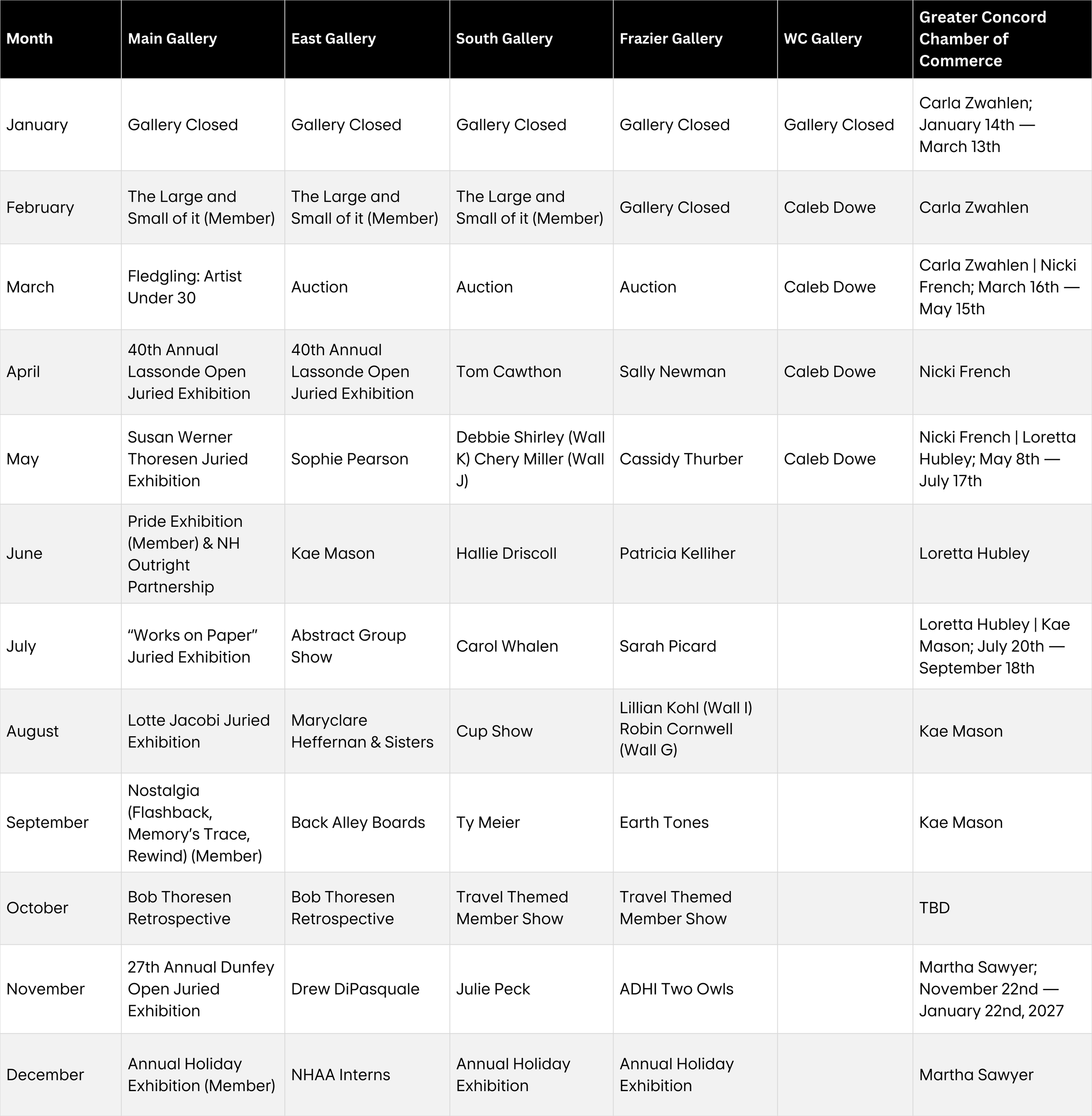 2026 Exhibition Calendar